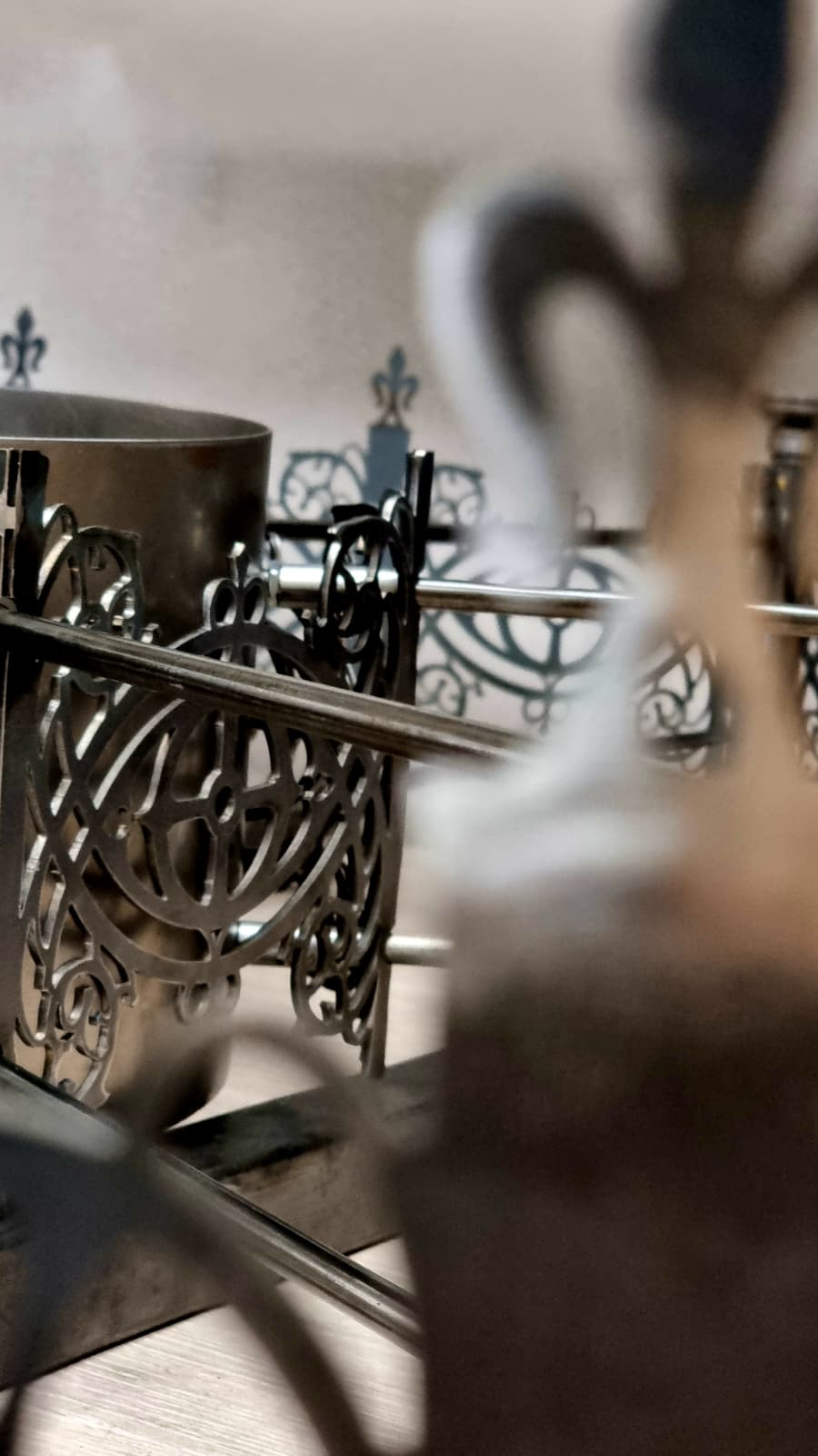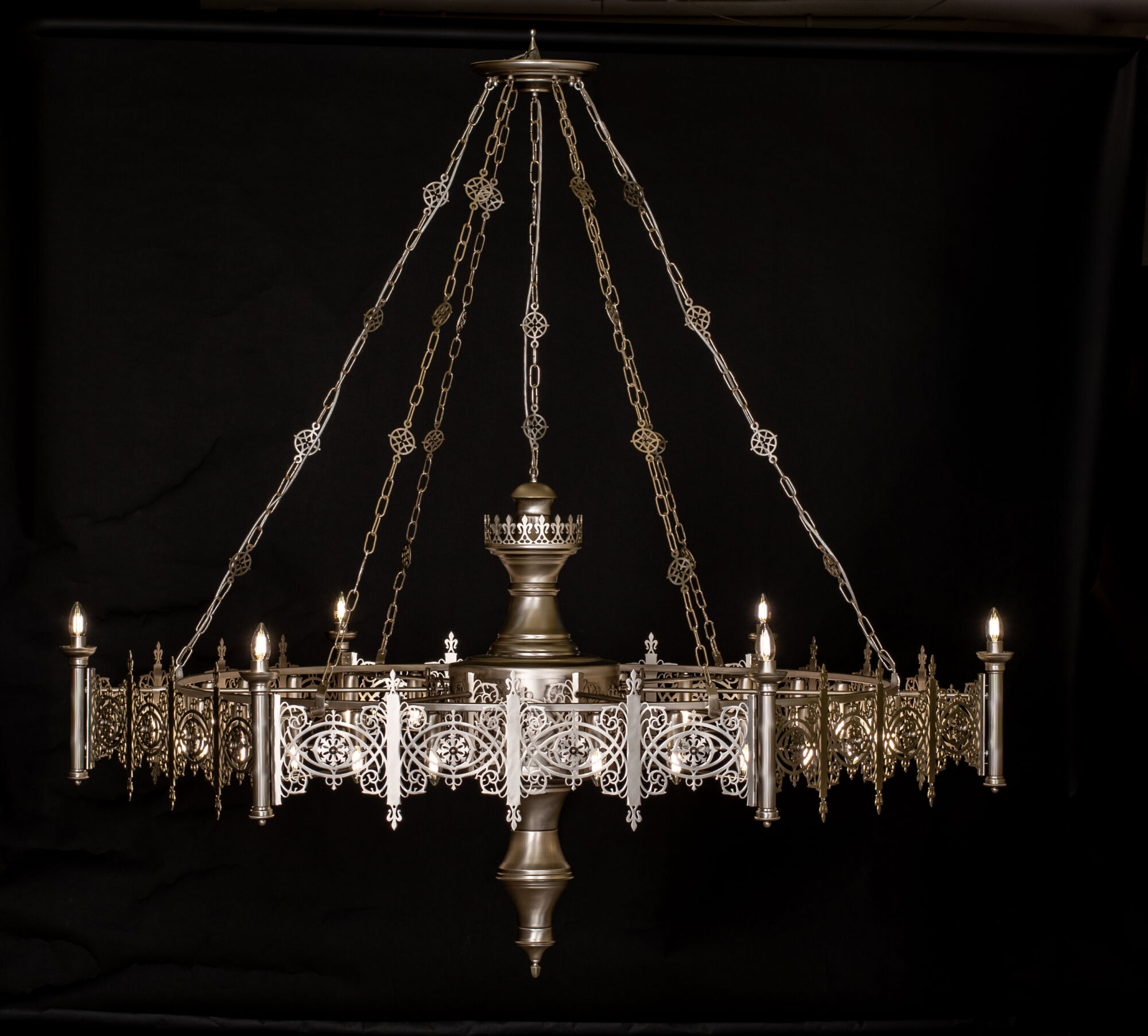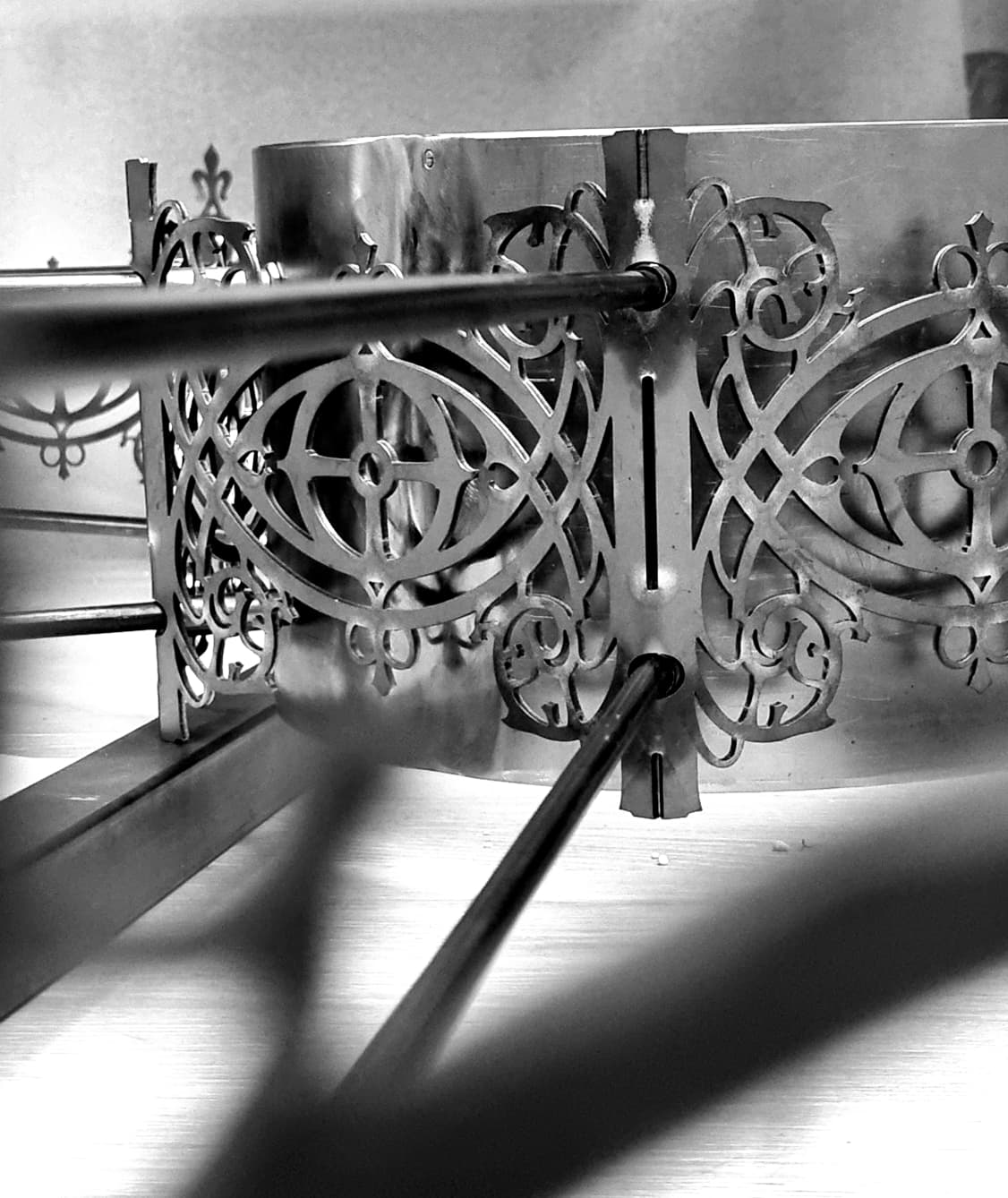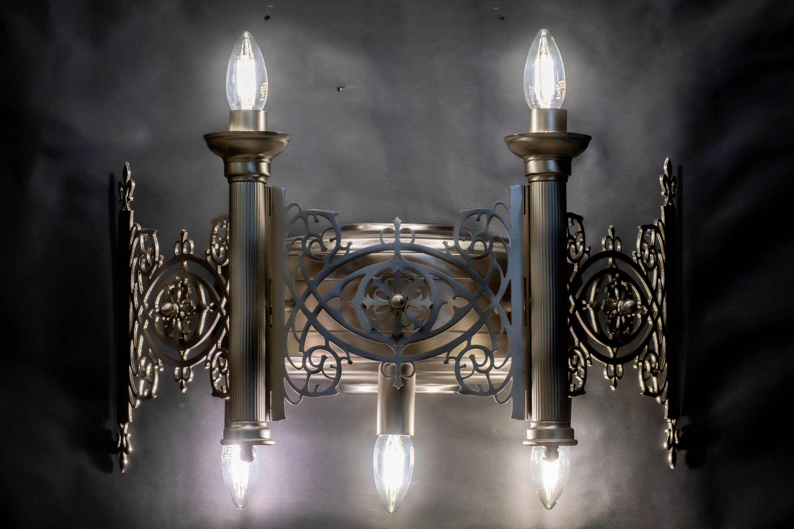 Pojawiły się nowe zapytania. Najpierw o większe, bardziej okazałe kinkiety. Potem o subtelne, kute maskownice, które miały ukryć minimalistyczne oświetlenie Drogi Krzyżowej, nadając mu spójny, gotycki charakter. Na koniec przyszła prośba o plafon do wejścia pod chórem – element, który miał witać wchodzących i dyskretnie nawiązywać stylistyką do głównego żyrandola.