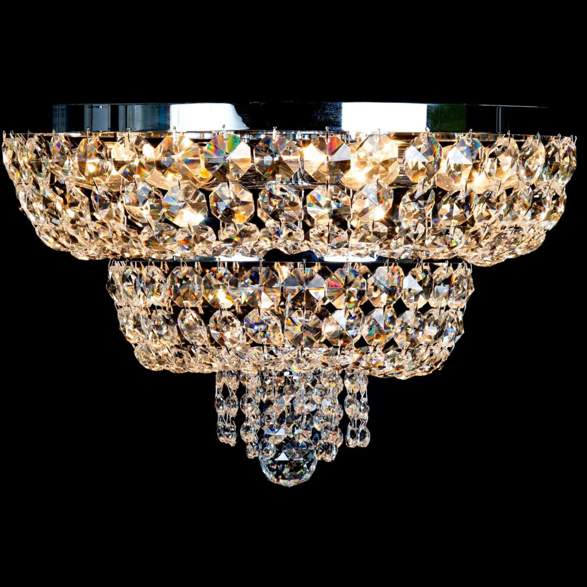 Klasyczne żyrandole typu Plafon doskonale sprawdzą się w niskich pomieszczeniach. Inspiracje dla tradycyjnej formy lamp Plafon czerpaliśmy z tradycyjnych płaskorzeźb i sztukaterii, które miały swój rozkwit w epoce renesansu i baroku. Kryształowe lampy z kolekcji Plafon produkujemy w różnych wielkościach, kształtach i z różnymi ozdobami (talerzyk, wisiorek). Oprócz lamp sufitowych dostępne są również kinkiety z tej samej kolekcji.